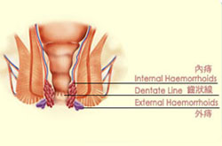 痔瘡可分為內痔、外痔及混合痔三類。內痔位於痛楚分界線齒狀線以上,病者一般不會感到痛楚。外痔位於齒狀線以下,並突出至肛門外,可以看到及摸到,發作時病者會感到痛楚。如痔瘡範圍從齒狀線以上伸延至以下的則稱為混合痔。