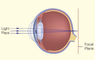 Farsightedness is less common than nearsightedness amongst Hong Kong children, and it is due to the eyeball being too short. Farsightedness usually decreases as the eyeball grows and its symptoms are less obvious than nearsightedness. If a child only has mild farsightedness (less than 2D or 200 degrees), the elasticity of the lens helps to keep things in focus and he/she can see rather clearly. However, if the child has severe farsightedness, he/she will have difficulty in focusing and thus will see poorly. The child may even develop squint (strabismus) and lazy eye. Under these circumstances, the child must wear glasses.
