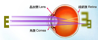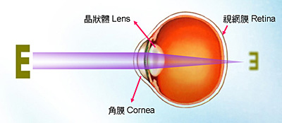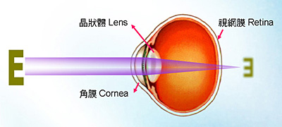 如果视力正常,当光线穿过角膜及晶体,并聚焦在视网膜上,清晰的影像就会在脑中形成,就像摄影机把光线聚焦在菲林上形成影像。