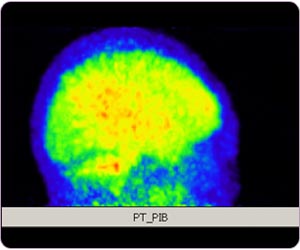 C-11 PIB PET detects typical Alzheimer's disease with amyloid plaque at post cingulate gyrus, frontal lobe, precuneus, parietal lobe and temporal lobe.