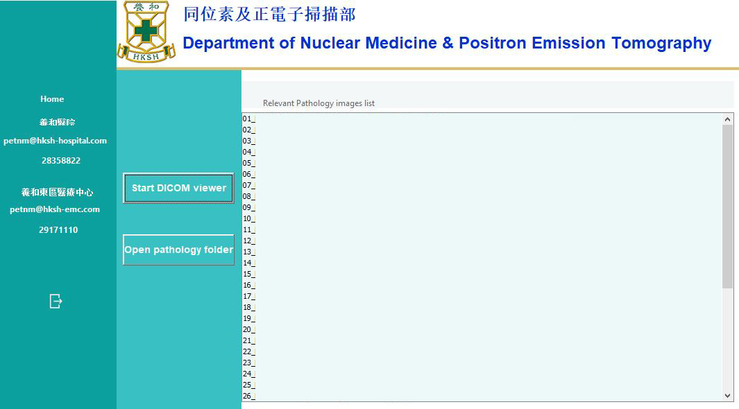 A color-printed booklet with a Write-Once USB drive will be provided as a standard package. All the scan data and relevant pathology images captured by nuclear medicine specialist are included. Using the MIM Viewer software provided, referral doctors or patients can view the images with their own computer. You can also request our staff to upload your images and reports to the Electronic Health Record Sharing System (eHRSS) run by the HKSAR Government to facilitate information sharing among participating hospitals and clinics including the Hospital Authority.