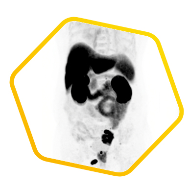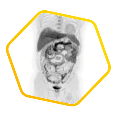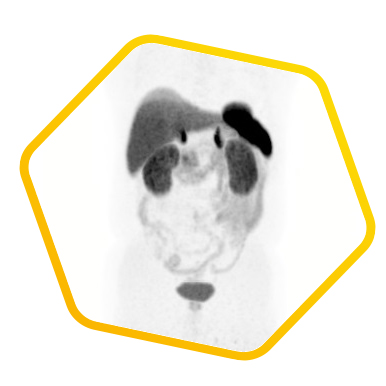 PET tracers work as the biological imaging probe. Some of the commonly applied PET tracers include: PET radionuclide labelled deoxyglucose, acetate, DOTA-conjugated peptides, prostatic specific membrane antigen, etc. After injection, the tracer is absorbed based on organs’ structure as well as cell metabolism. The patient is then scanned with the PET/CT scanner to pick up any signals emitted from the tracer and hence the lesion location can be identified and uptake can be quantified. With this unique piece of medical information, we can locate lesions precisely and also help the assessment of treatment effectiveness.
