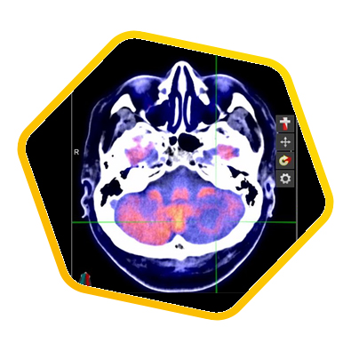 PET/CT scans with special tracers can show 3-dimensional images of blood flow and biomolecules deposition in the brain for diagnosis and monitoring the therapy progress of various neurological diseases, such as Alzheimer's, Dementia, Parkinson's disease, Huntingdon's chorea and autism. In 2018, the National Institute on Aging-Alzheimer's Association (NIA-AA) had revised the definition of Alzheimer's Disease (AD) from a syndrome diagnosed by a set of clinical criteria to a biological construct using abnormal protein deposits to define AD as a unique neurodegenerative disease that can lead to dementia. Our hospital has almost 20 years of experience in producing specific tracer to detect abnormal protein deposition in the brain.
