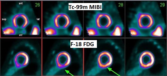 PET/CT and nuclear medicine scans can work together in assessing coronary heart disease. PET/CT scan is particularly helpful in determining whether there is any reversible occlusion (hibernating myocardium). This kind of myocardium still metabolizes glucose even though it seems to be infarcted. With modern advances in cardiology, such hibernating myocardium stands a very good chance of regaining function after angioplasty or cardiac by-pass surgery.