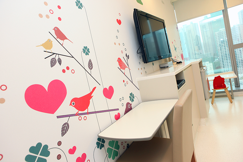 為令兒童在住院期間感覺舒適,病室在設計方面亦有周詳考慮。病室內外都色彩繽紛,洗手間及花灑浴室燈光柔和,兒童遊戲室配備電腦、電視及各類玩具,圖書閣活動園地更設有壁佈板及畫板,讓小朋友一展創意。