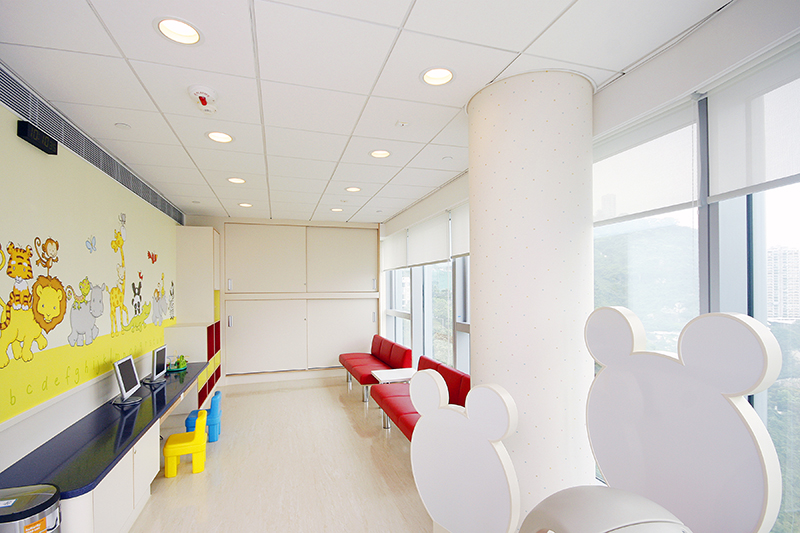 兒科病室劃分成私家病室、半私家病室及普通病室三種,全部都開揚寬敞,更裝有落地玻璃窗,令室內陽光充沛。本層治療室設備齊全,可進行注射及穿刺等一般醫療程序。有需要的兒童可於睡眠測試室進行多頻道睡眠測試,以診斷是否患上阻塞性睡眠窒息症。